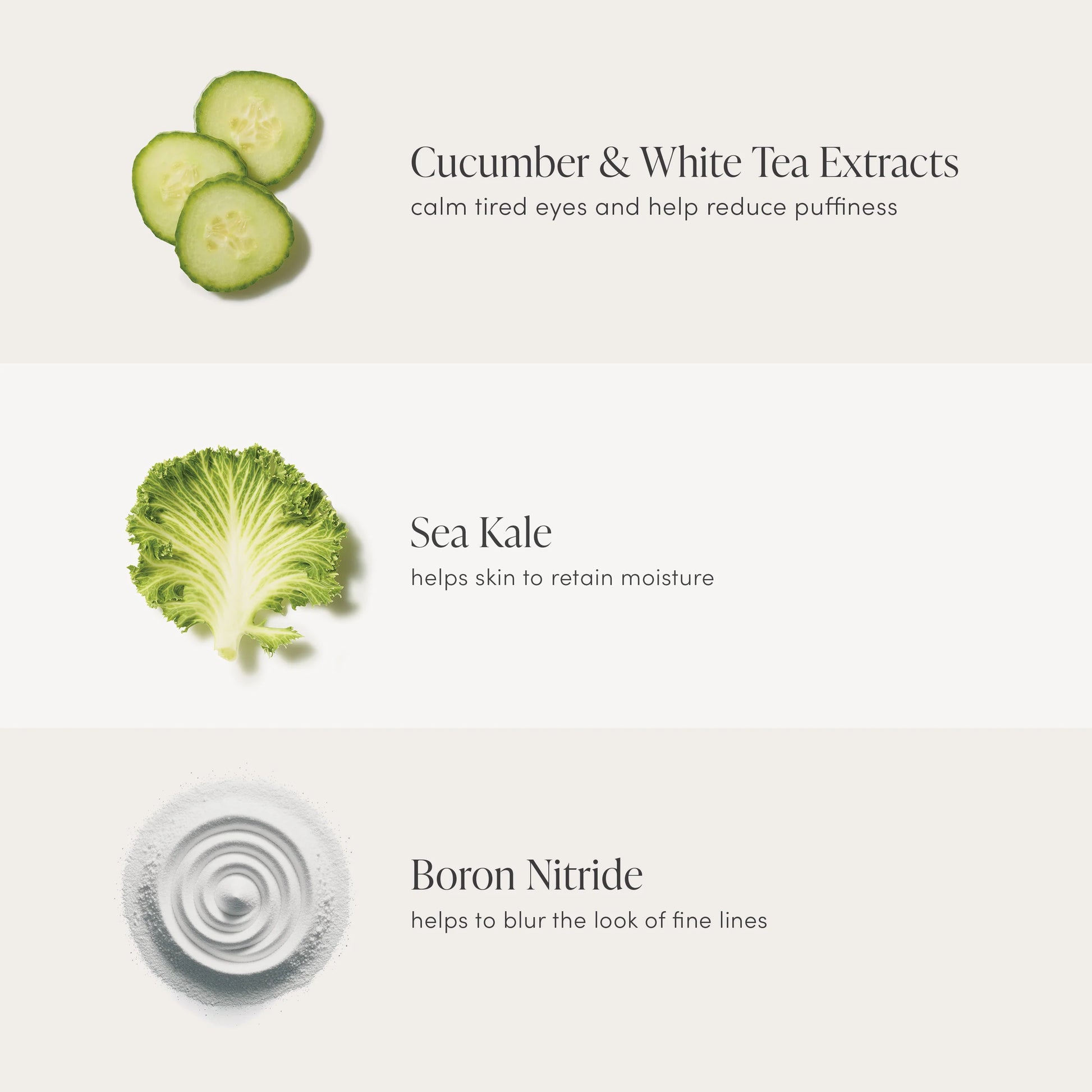 - Cucumber & White Tea Extract: Calm tired eyes and help reduce puffiness.